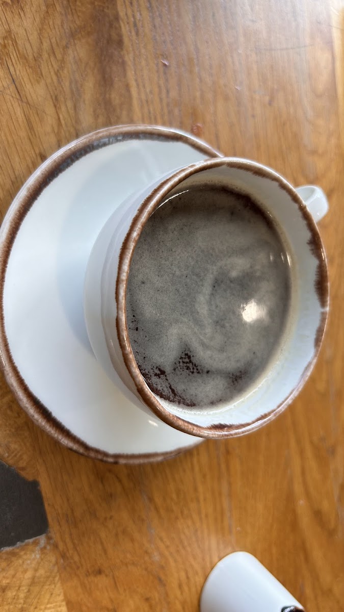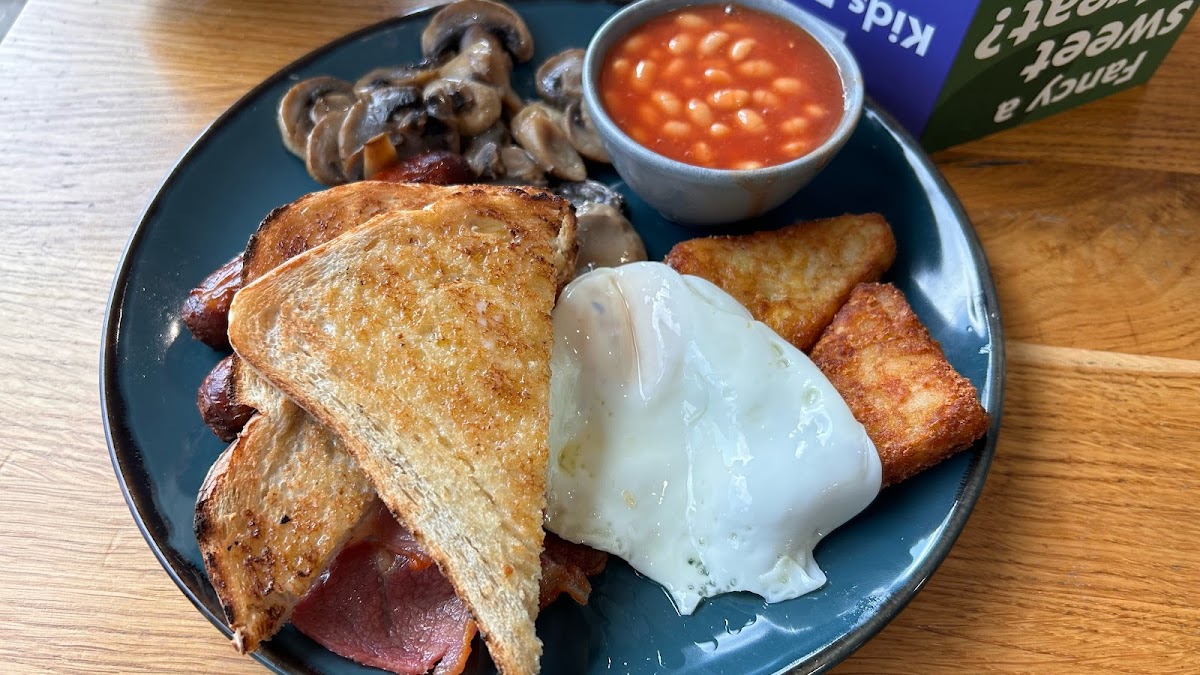 Nice cafe. Has a little area with toys for kids to play. Have a self service machine like McDonald’s which is quite handy nice helpful staff. Coffee was nice. The full English was good. Nicely cooked and tasty. Good value.